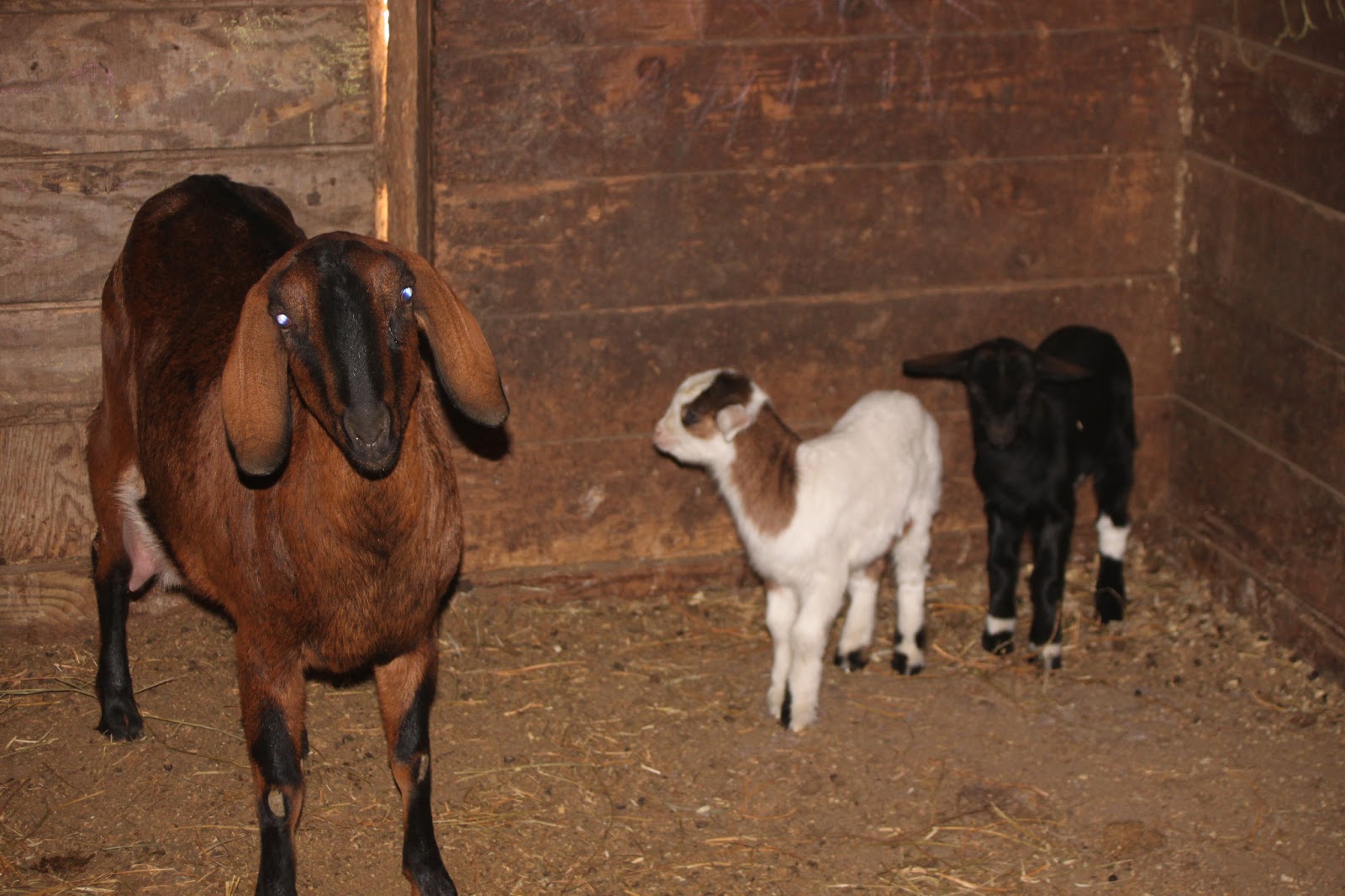Kaysie and Emma love the goats...here are a couple pictures of Libby and her babies.....Chris named them Harley and Davidson...Emma must have liked the names because she kept them named that. :) Very cute...
